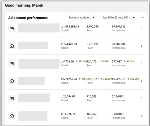 Jesteśmy przede wszystkim praktykami, którzy wiedzą, co oznacza wydać własne "ciężko zarobione" 2.314.207 zł na reklamę na Facebooku oraz ponad 1 000 000 zł na reklamę na YouTubie, Google oraz Linkedin.